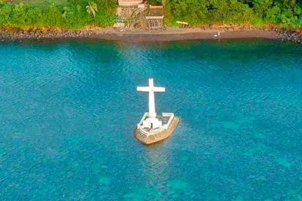 This cemetery used to be the the cemetery of the people in Camiguin. However, due to the eruption of Mt. Vulcan, it became submerged in water.